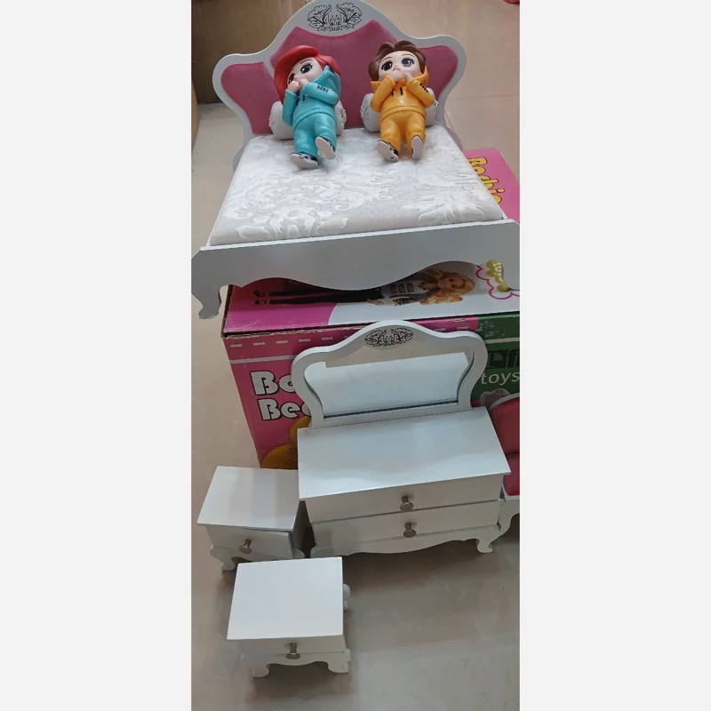 ست تخت خواب و آینه کنسول چوبی باربی